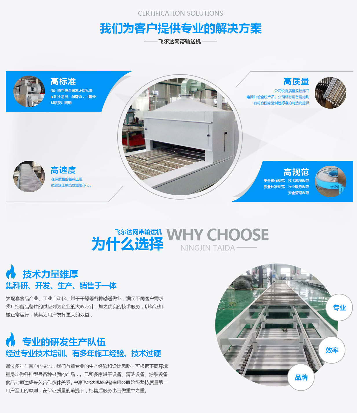 寧津飛爾達機械設備有限公司始建于1997年,位于山東省寧津縣經濟開發(fā)區(qū)。本公司以生產制造金屬類網帶、鏈板、鏈條為主導產品。 建廠近20年,已和多家烘干設備、清洗設備、涂裝設備、食品公司、工業(yè)自動化達成長久合作伙伴關系。在保質量、保工期的基礎上更把售后當做重要環(huán)節(jié)。 本廠配件系列有:輸送網帶、輸送鏈板、輸送鏈條、乙型網帶、烘干網帶、清洗網帶、不銹鋼鏈板、沖孔鏈板、排屑鏈板。 設備系列:網帶輸送機、鏈板輸送機、烘干輸送機、清洗輸送機、轉彎輸送機。